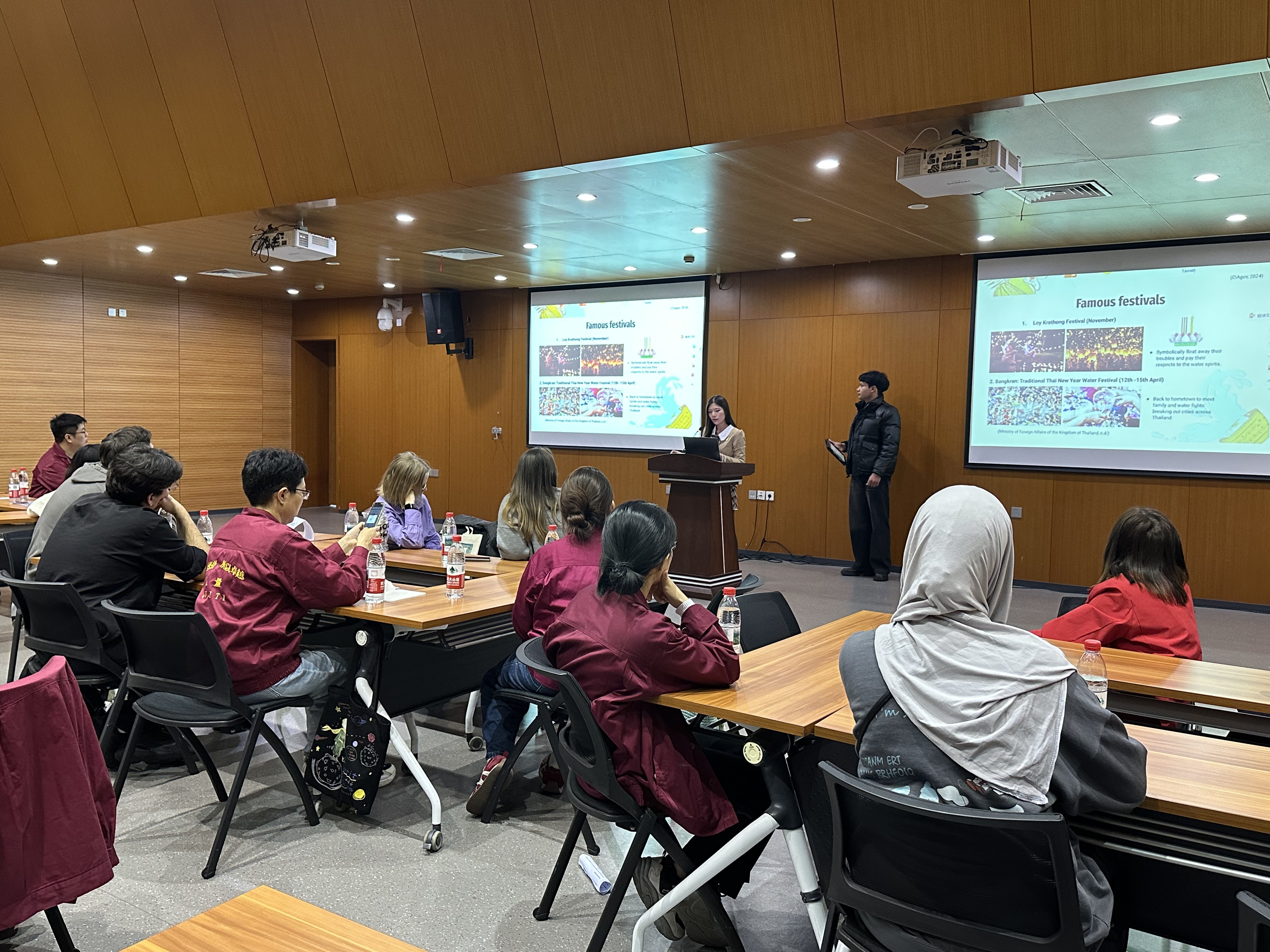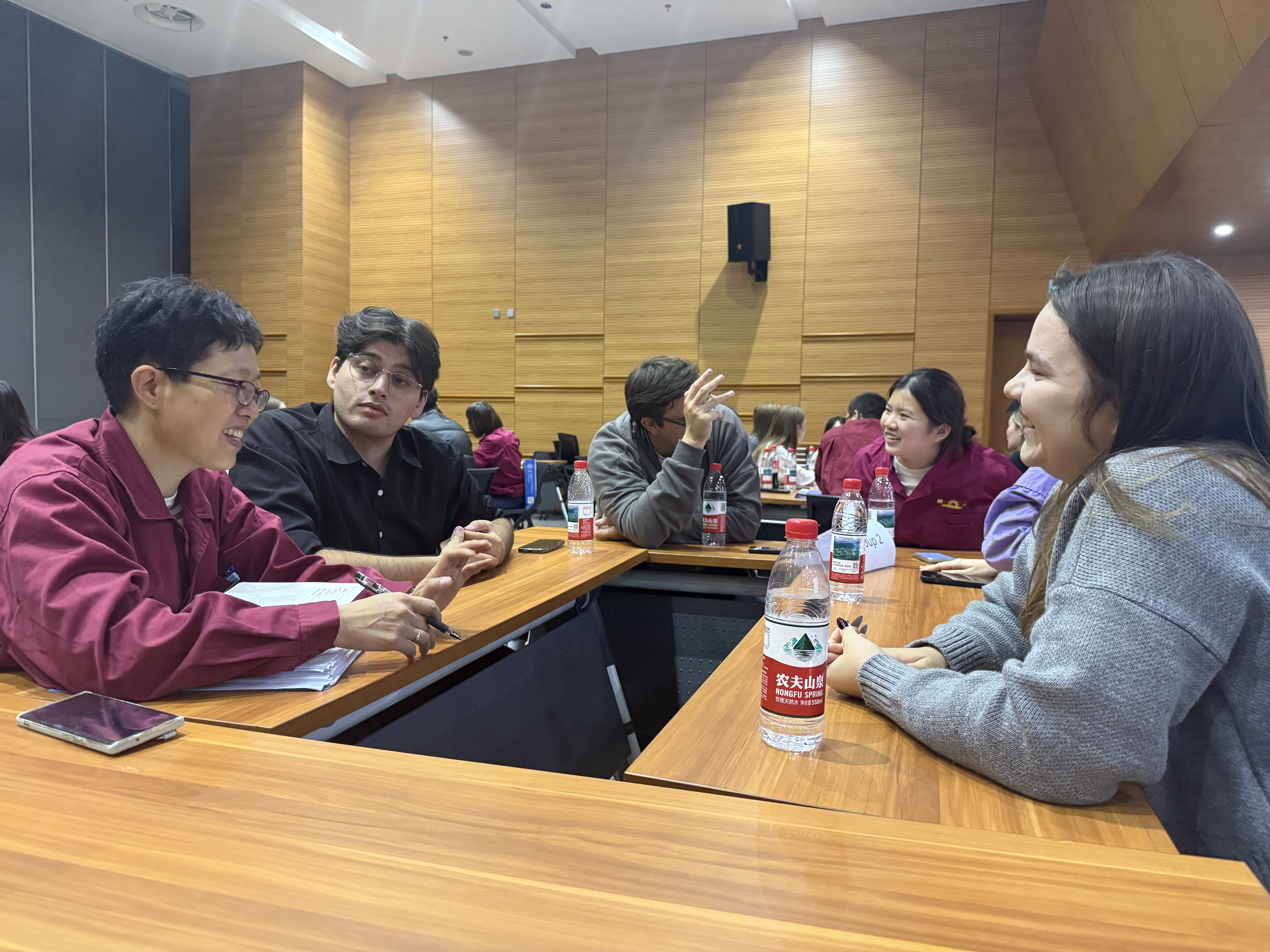 随后,来自泰国和巴基斯坦的同学化身“国家文化使者”,以精彩的演讲向企业方介绍了各自国家的风土人情、经济概况与市场潜力。双方围绕国际市场拓展、文化差异应对、本土化营销策略以及绿色可持续发展等议题,展开了深度交流。