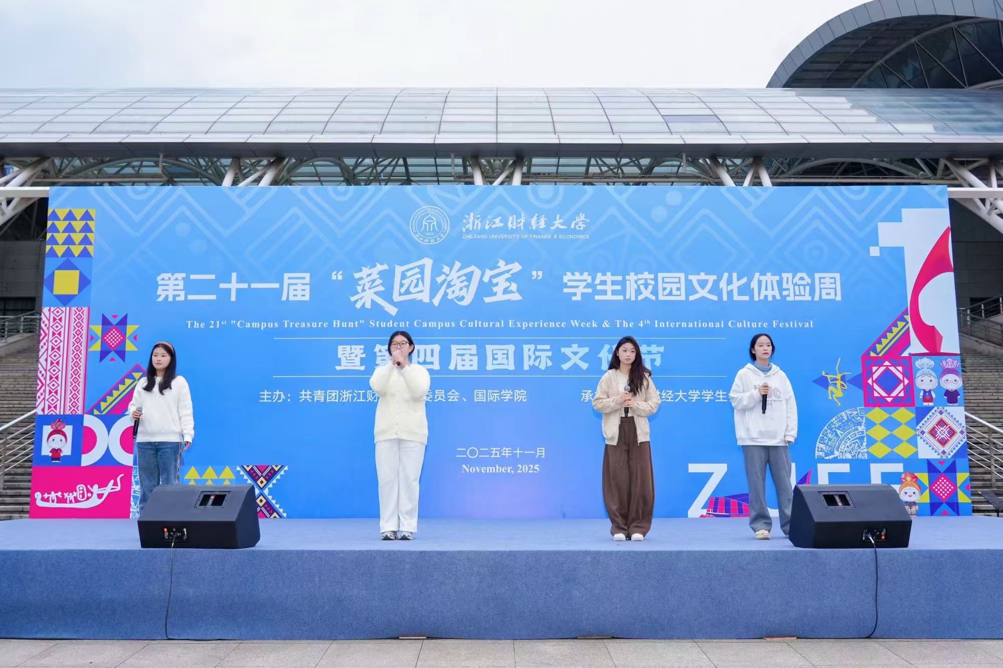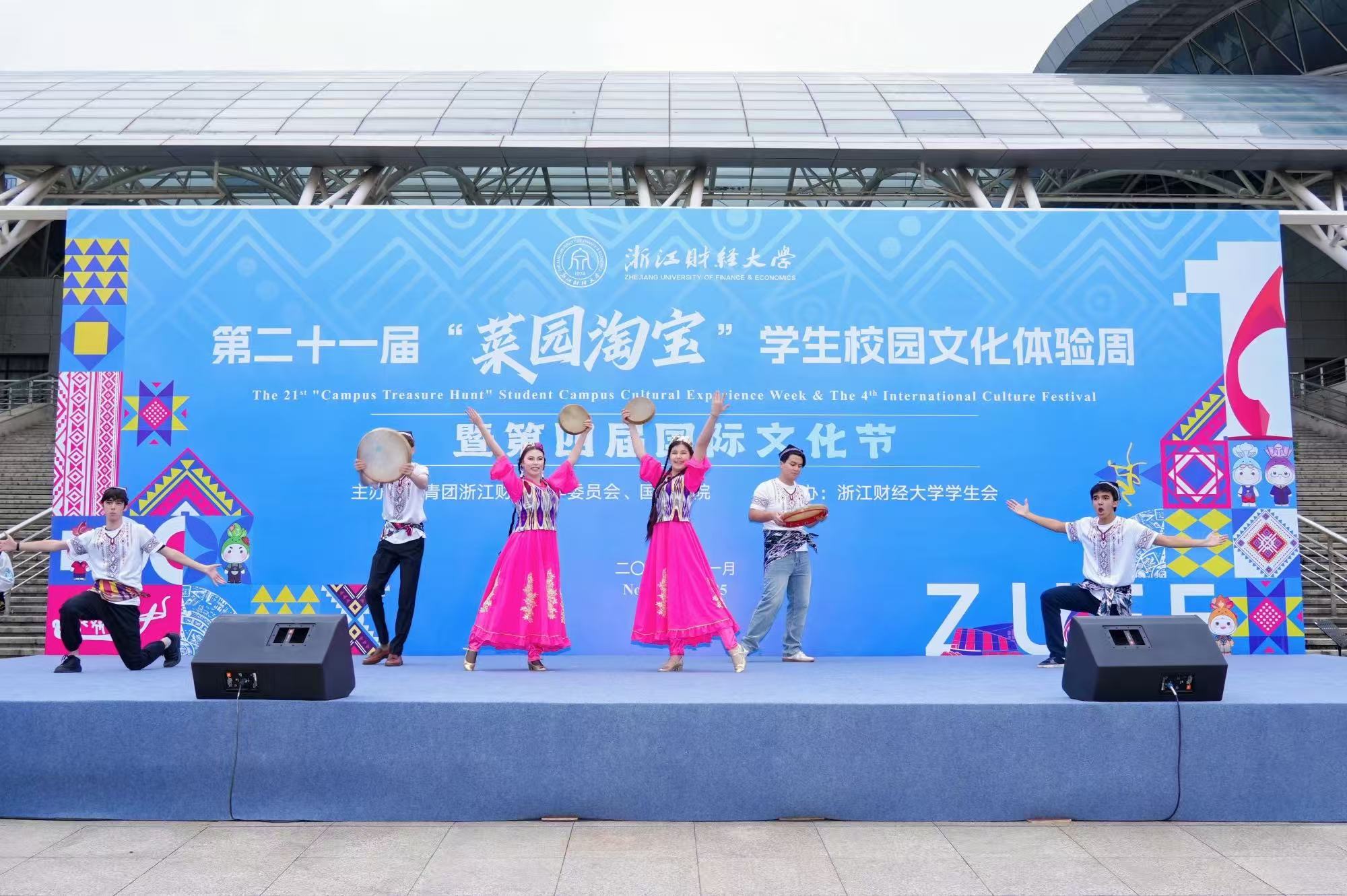 11月11日下午,由校团委、国际学院联合主办的浙江财经大学第二十一届“菜园淘宝”学生校园文化体验周暨第四届国际文化节开幕式文艺汇演,在师生们的热切期待中隆重上演。一场融汇中外、精彩纷呈的文化盛宴在校园内华丽绽放,标志着为期五天的校园文化盛宴正式启幕。
