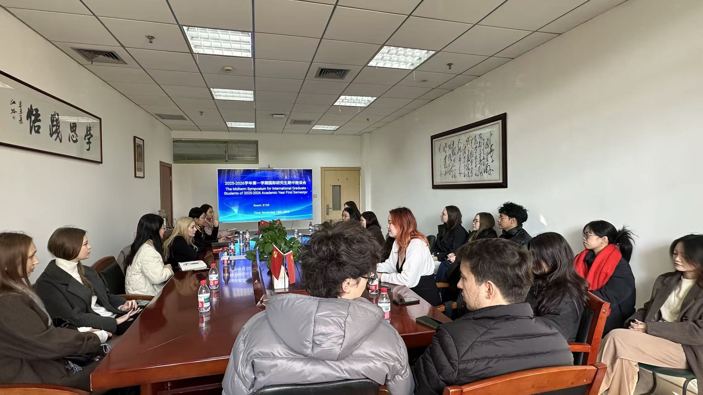 11月18日,校研究生督导组组织召开2025-2026学年第一学期国际研究生期中座谈会。学校研究生教学督导组成员余清萍、留学生管理老师徐哲艺及25位国际研究生代表参加座谈,会议由国际学院留学生研究生秘书蓝莹主持。
