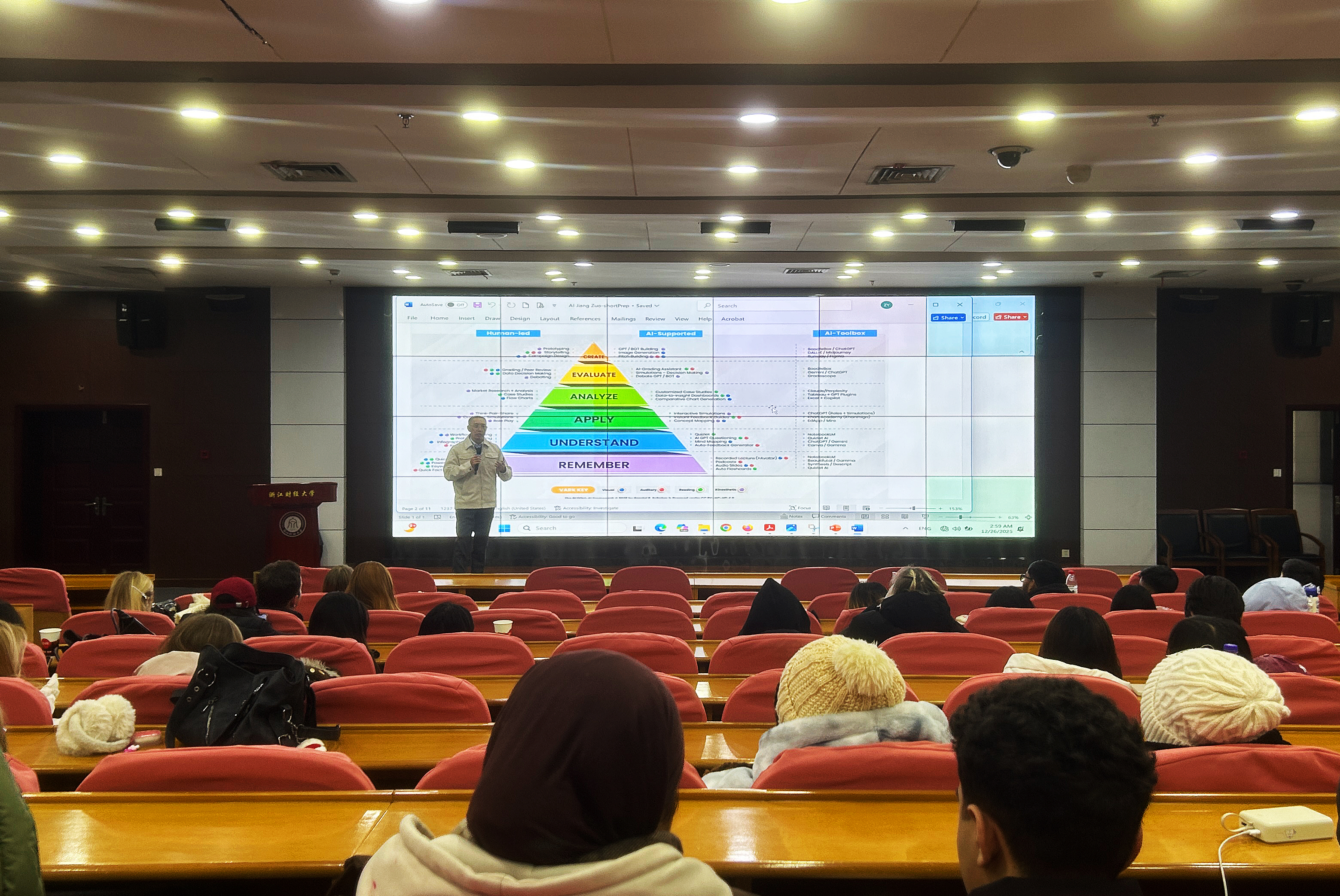 12月26日,国际学院成功举办线下主题讲座。本次讲座特邀知名学者张跃教授担任主讲,以“The Whole-Person Development in the Age of AI”为题展开分享。国际学院院长柴志贤主持讲座,学院师生代表共同参加,活动吸引了超过120名学生积极参与。