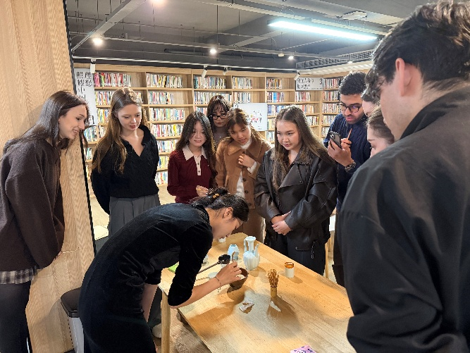2026年3月26日下午,《组织行为学理论与方法》课程负责人董蕊老师带领2025级企业管理专业国际研究生前往载家书房缤纷店,开展移动课堂实践教学,助力国际留学生了解中国企业文化、感受中华优秀传统文化。