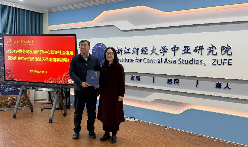 讲座最后,副校长郑亚莉向徐晓天颁发聘书,正式聘任其为中亚研究院兼职研究员。本次讲座深化了师生对中亚地区价值的理解,为学校区域国别研究增添了新动力。
