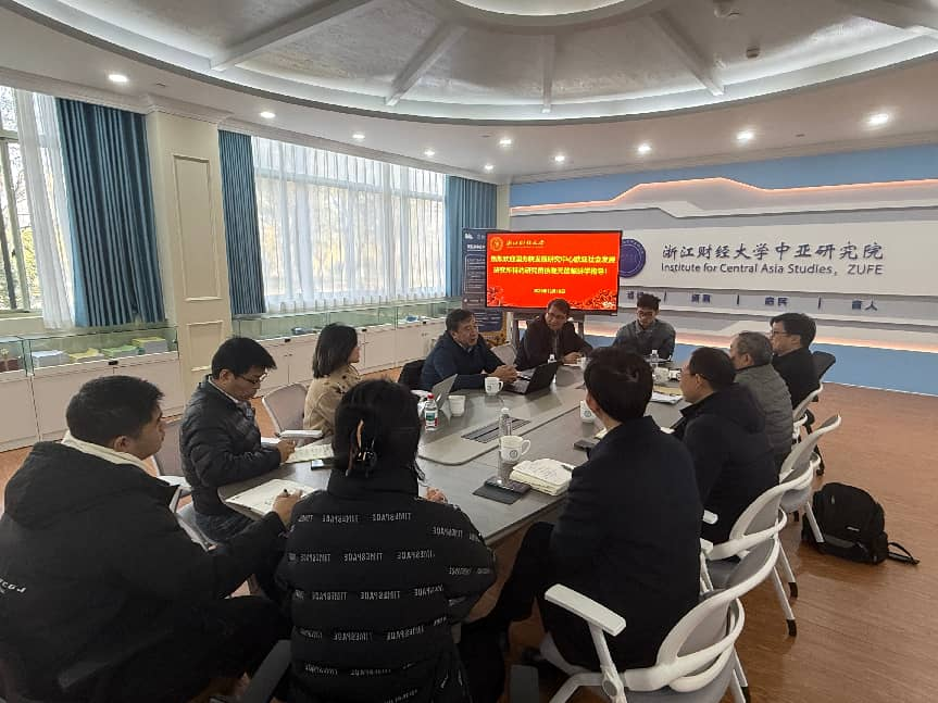 徐晓天首先肯定了我院已取得的研究成果,并围绕中亚在中国周边外交中的地位、大国竞争态势、未来经济合作机遇及研究方向展开深入阐述。他指出,中亚是中国周边首个战略伙伴集群区、重要能源资源来源地、“一带一路”西向首站及安全合作关键伙伴。建议我院结合经贸学科特色,重点关注大国博弈、区域经济一体化、政治转型与非传统安全等议题,为校企合作提供学术支持。