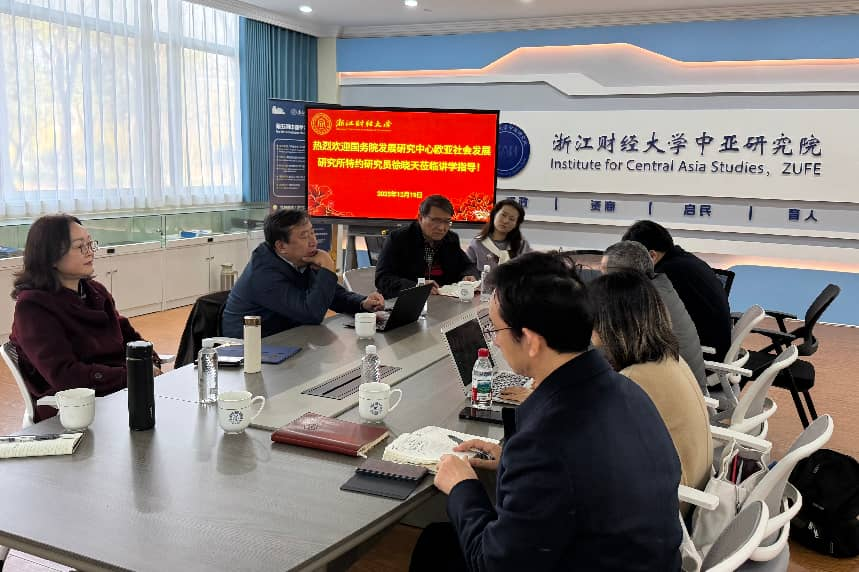 12月19日上午,中亚研究系列讲座第二讲在中亚研究院成功举办。国务院发展研究中心欧亚社会发展研究所特约研究员徐晓天受邀主讲,作了题为“中亚在中国周边外交中的定位与价值”的报告。副校长郑亚莉出席讲座。讲座由国际学院院长、中亚研究院执行负责人柴志贤主持,国际交流合作处、经济学院、外国语学院、法学院等教师代表聆听讲座。